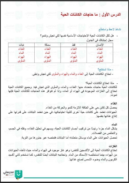 حل كتاب العلوم للصف الثالث الفصل الاول