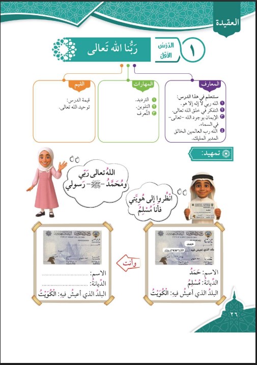 حل كتاب التربية الاسلامية للصف الأول الفصل الأول الكويت